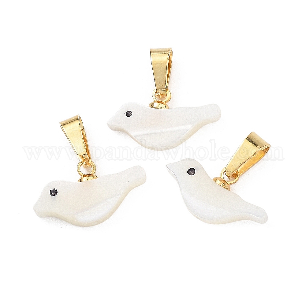 Натуральная ракушка трохида / подвески из ракушки трохуса, Подвески в виде птиц с защелкивающимися креплениями из нержавеющей стали., белые