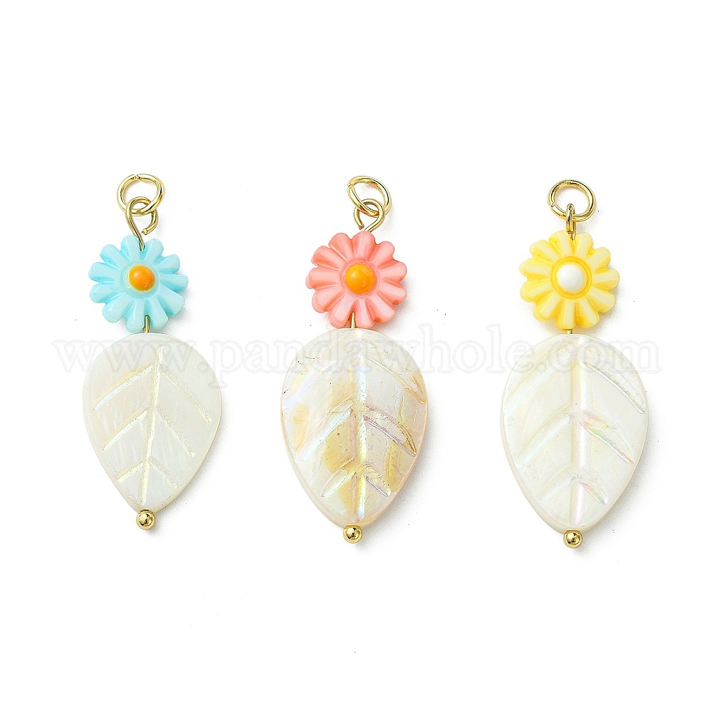 Резные подвески из натуральных пресноводных ракушек, подвески в виде цветочных листьев, с 304 выводами из нержавеющей стали, золотые, смешанные окрашенные и неокрашенные