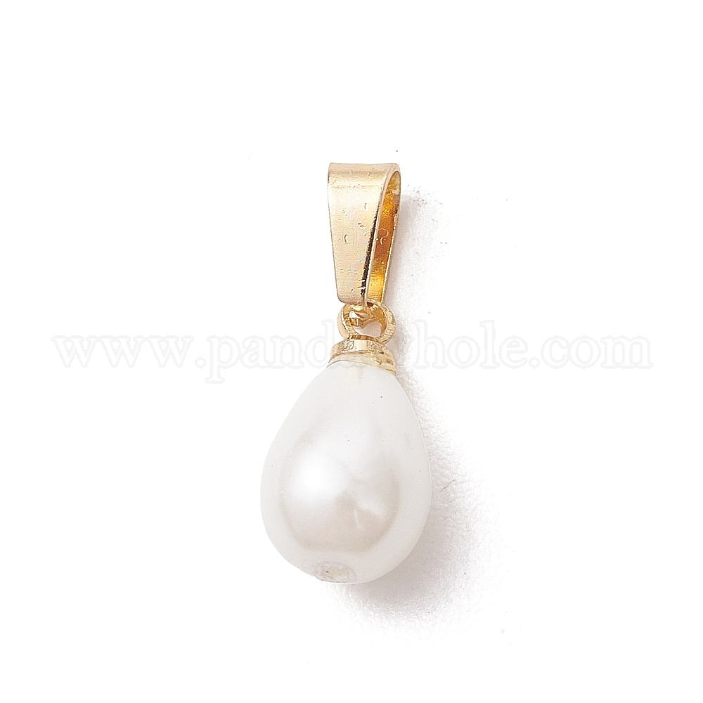 Оболочки жемчужина подвески, Подвески в форме капли с 304 защелкивающимися креплениями из нержавеющей стали, белые