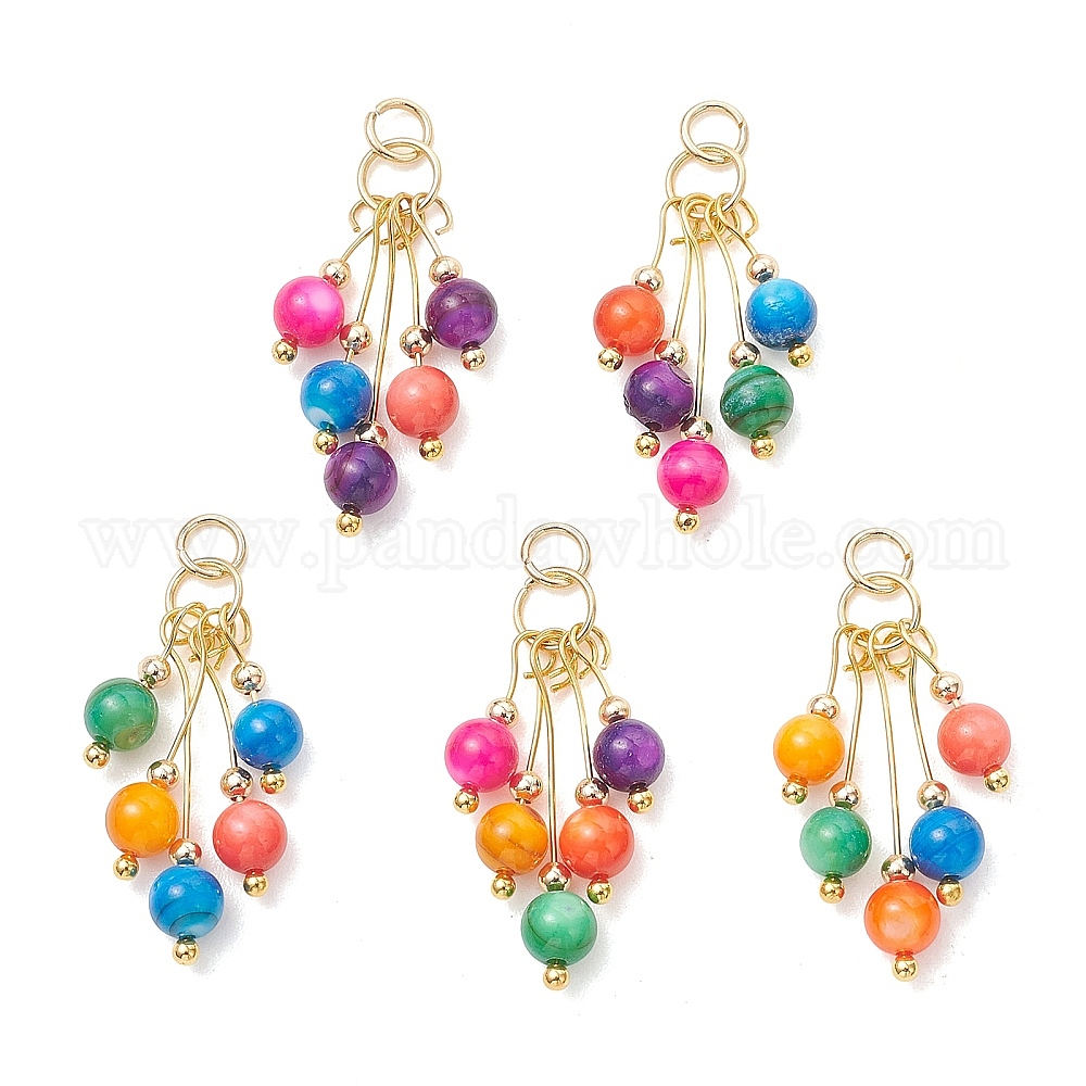 Окрашенные оболочки подвески естественных пресноводных, круглые бусины, подвески-кисточки, с 304 кольцами из нержавеющей стали, разноцветные