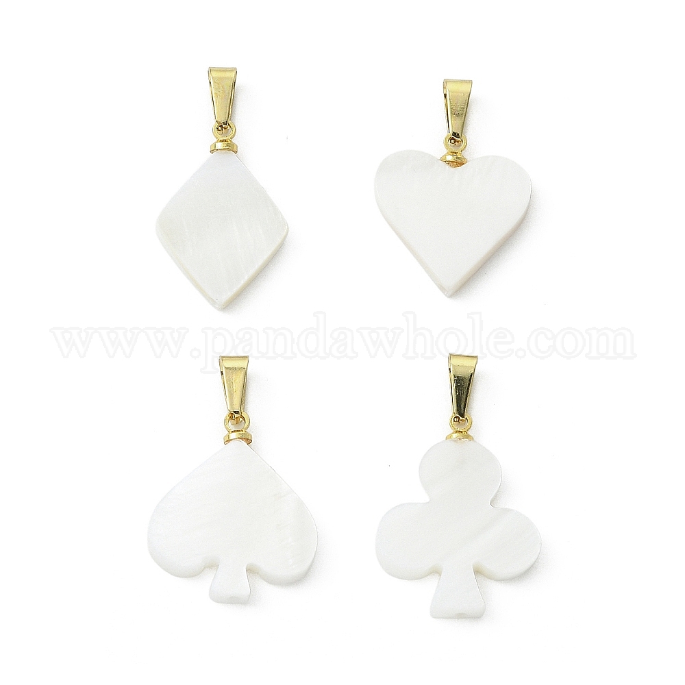 4шт. 4 стили подвесок из натуральных пресноводных ракушек, прелести игральных карт, с 304 результатами из нержавеющей стали и латуни, белые