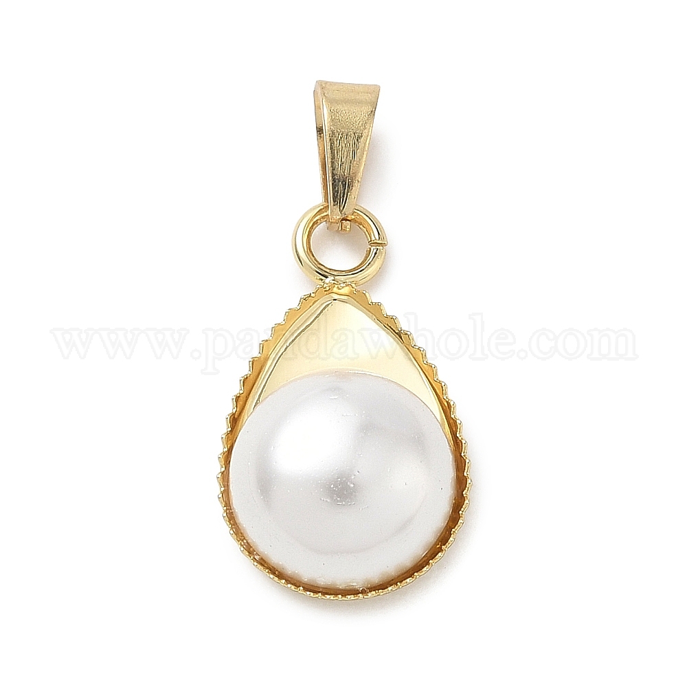 Подвески из латуни и перламутра, слезинки, с 304 защелкой из нержавеющей стали на поручнях, белые