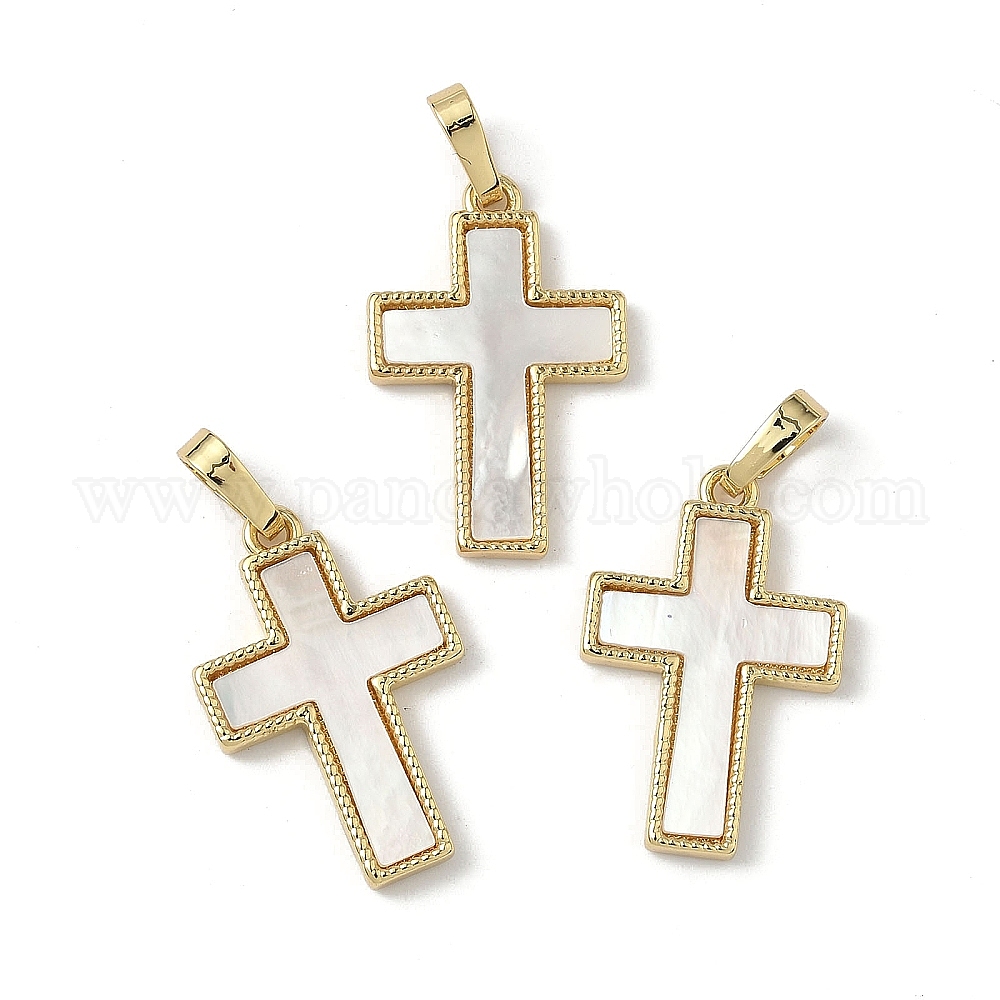 Подвески из латуни с натуральными белыми ракушками, крест прелести, долговечный, без свинца и без кадмия, стойки покрытие