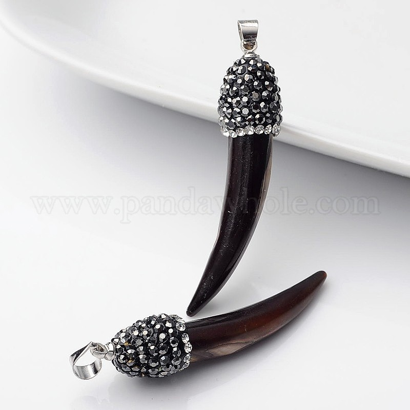 Подвески из раковины, форма клыка, с платиновым покрытием выводов из латуни и полимерной глины горный хрусталь, 39~43x9~10 мм, отверстие : 4x4 мм