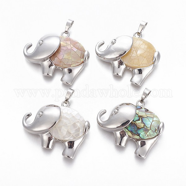 Подвески из раковины, с латунной фурнитурой , слон, платина