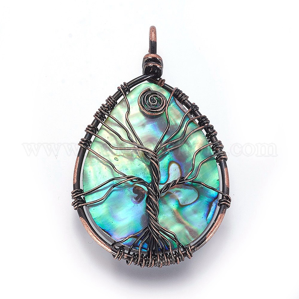 Раковины ушка / Paua Shellwire завернутые большие подвески, с латунной фурнитурой , слезинка с дерева