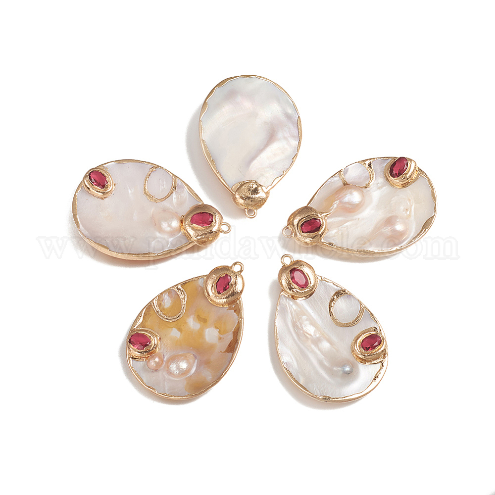 Природные подвески оболочки, со стеклянными кабошонами и медными золотистыми находками, слеза