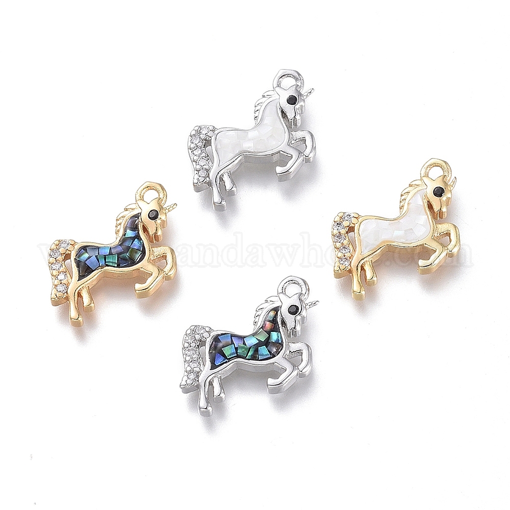 Натуральные раковины, с кубического циркония и латуни выводов, единорог (023K1H)