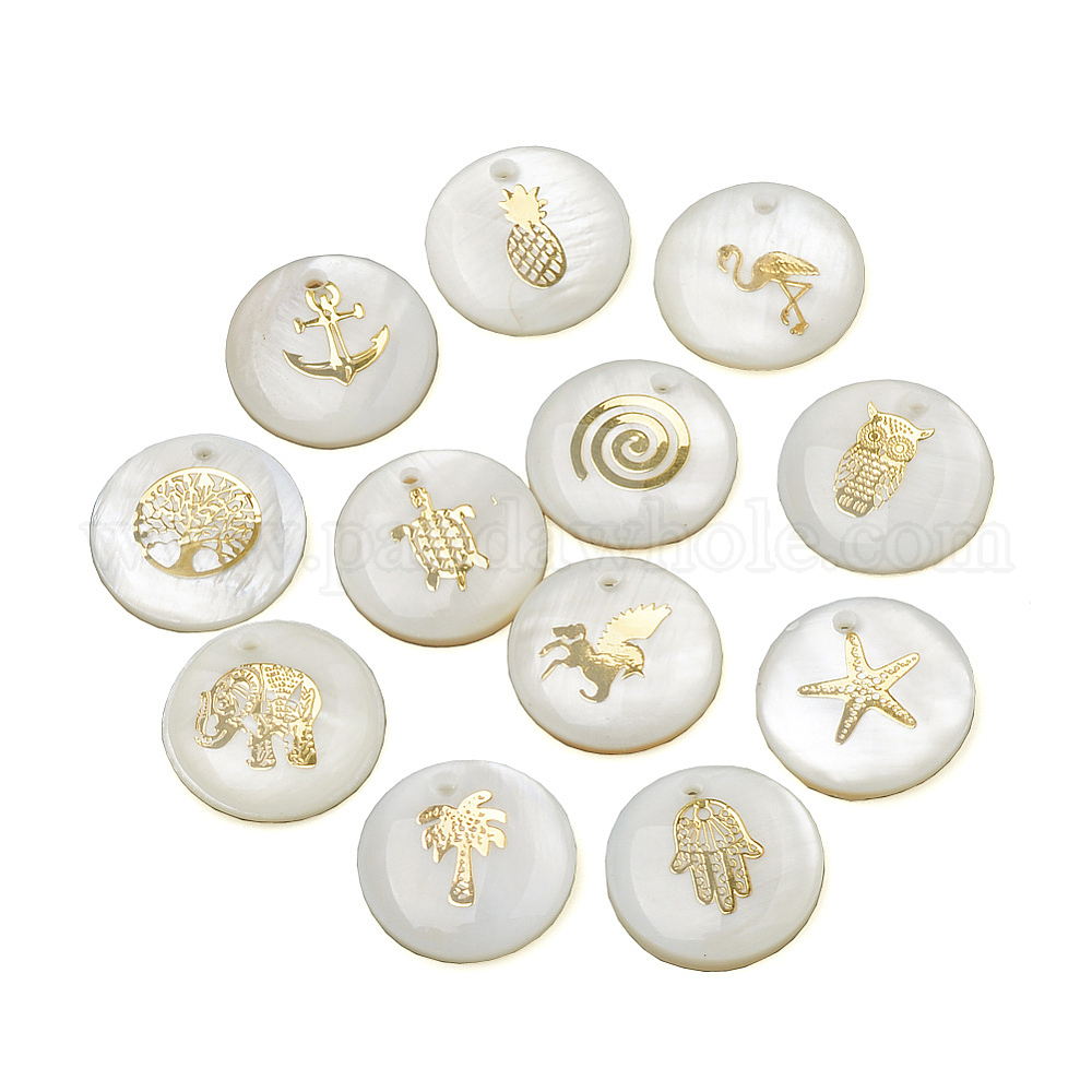 плоские круглые подвески-ракушки: 16 мм в диаметре, толщиной 3.5~4 мм , отверстие : 1.2 мм, 12 шаблоны, 5 шт / образец, 60 шт / коробка;