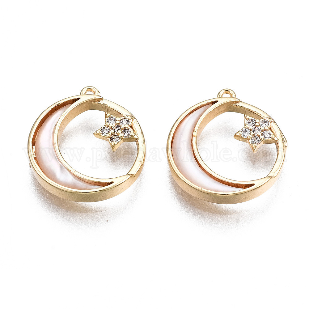 Латунные микропаве прозрачные кубические циркониевые подвески, с естественной оболочке, без никеля , Луна и звезды