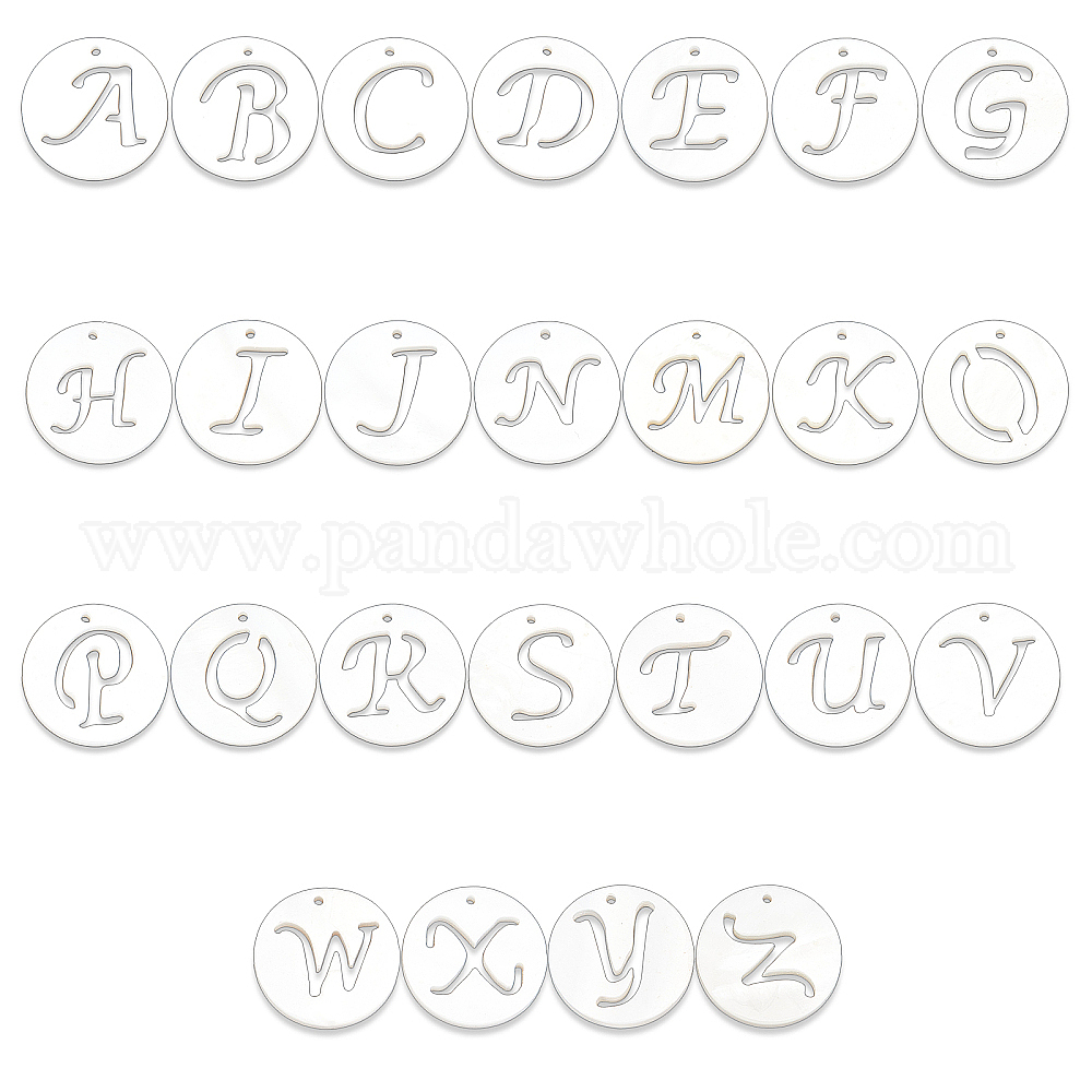 26 шт 26 стиль природных пресноводных ракушек подвески, плоский круглый с выдолбленным письмом