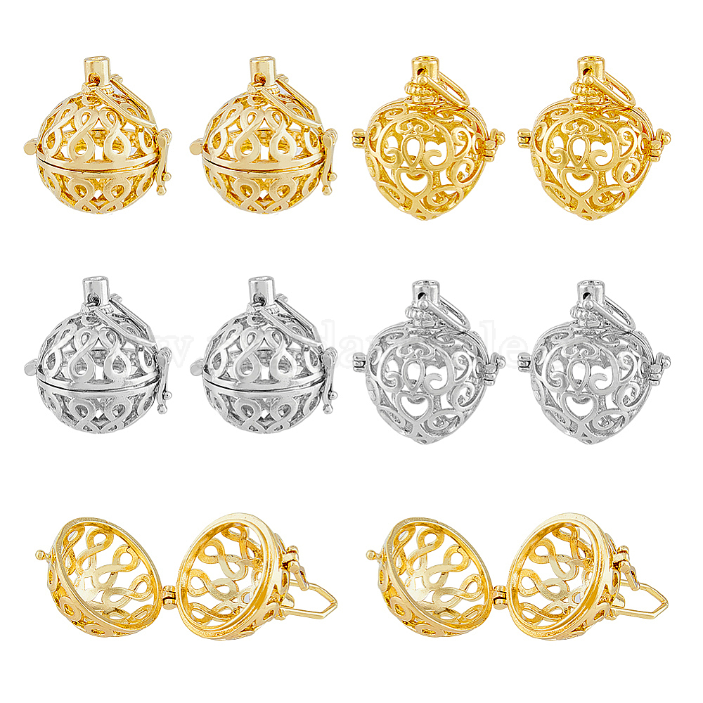 8шт 4 стили стойка покрытие латунь клетка подвески, для ожерелья, круглое и сердечное очарование