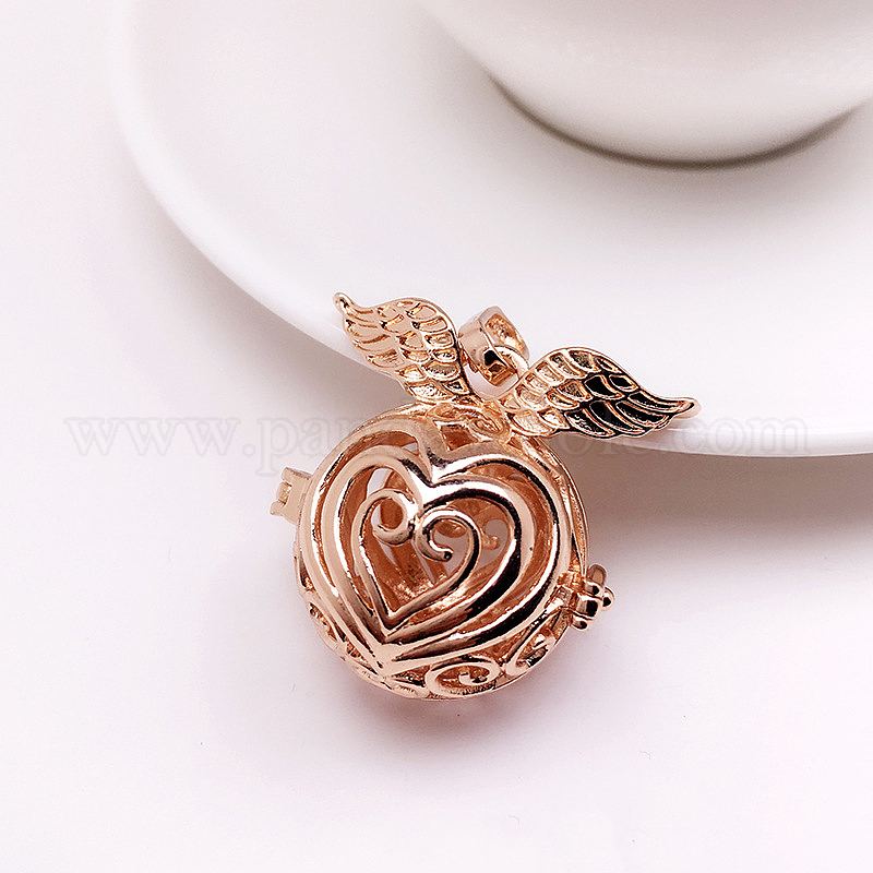 • Light Gold Латунные бусины, амулеты с полым сердцем и крылом, для ожерелья, золотой свет, 18 мм