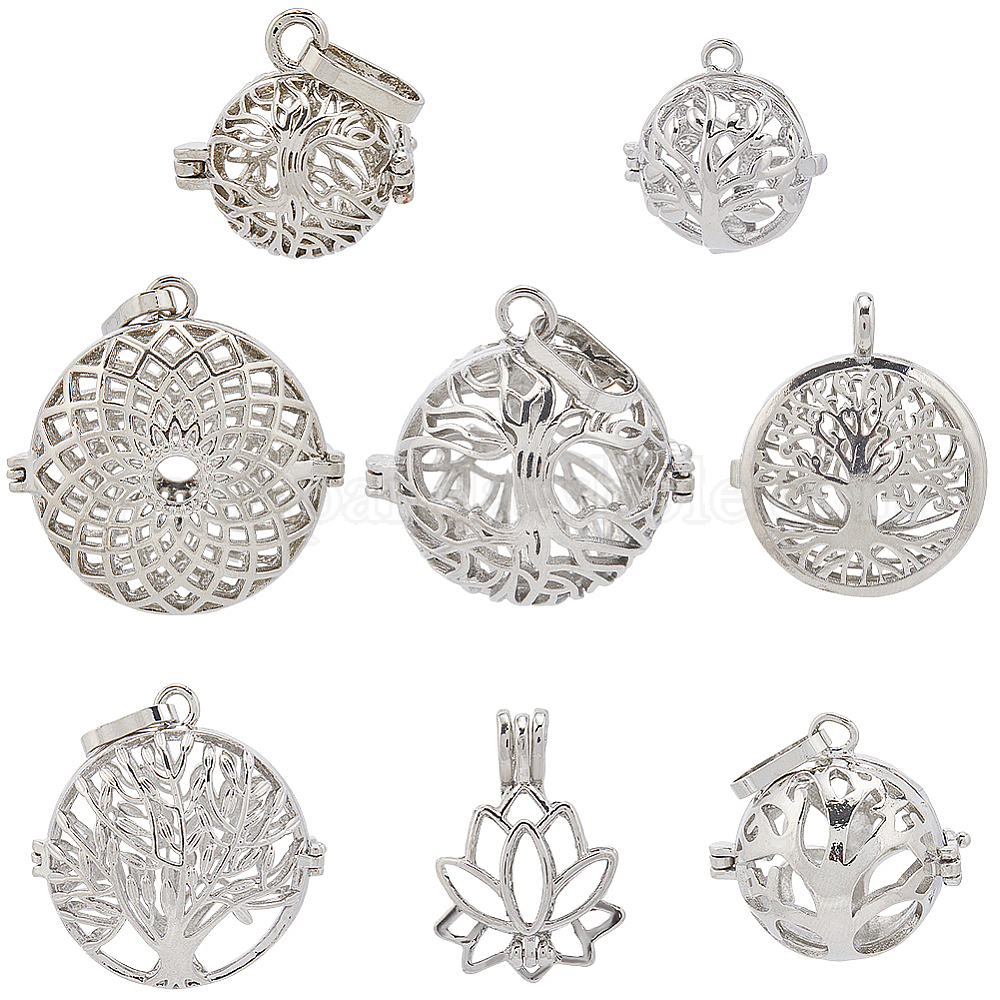 8 шт. 8 стили латунные и сплавные подвески с полой клеткой, для ожерелья