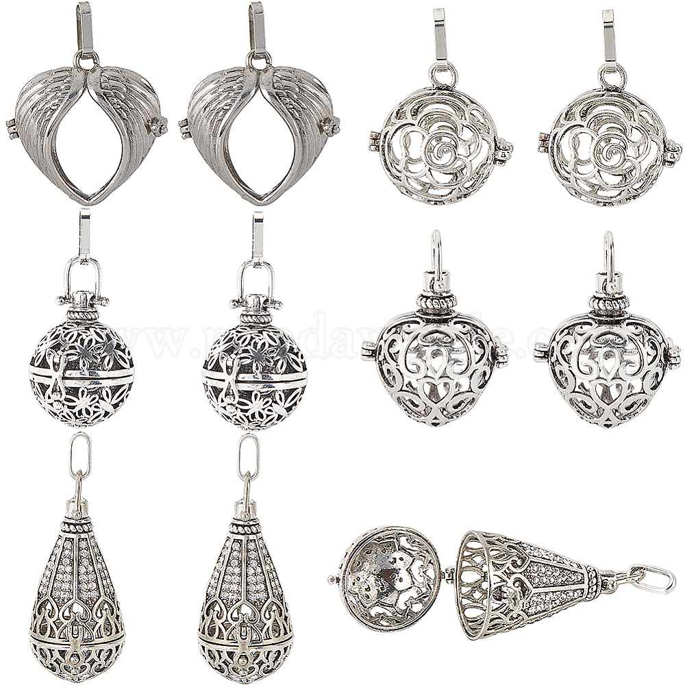 10шт. 5 стили тибетский стиль латунные подвески в виде клетки, разнообразные