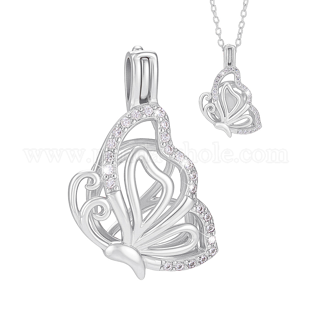 1шт. 925 подвески из стерлингового серебра с микропаве из прозрачных кубических цирконий в форме клетки, подвески в виде полой клетки бабочки, с печатью 925