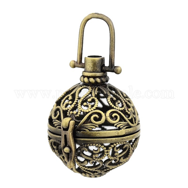 Круглые подвески из латуни с полыми клетками, для ожерелья, без кадмия, без никеля и без свинца, 38x28 мм, отверстие : 6x6 мм