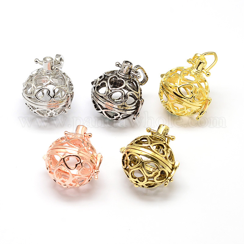 Филигранный круглый с сердечными подвесками из латуни, для ожерелья, без свинца, без никеля и без кадмия, 28x25x22 мм, отверстие : 9x4 мм