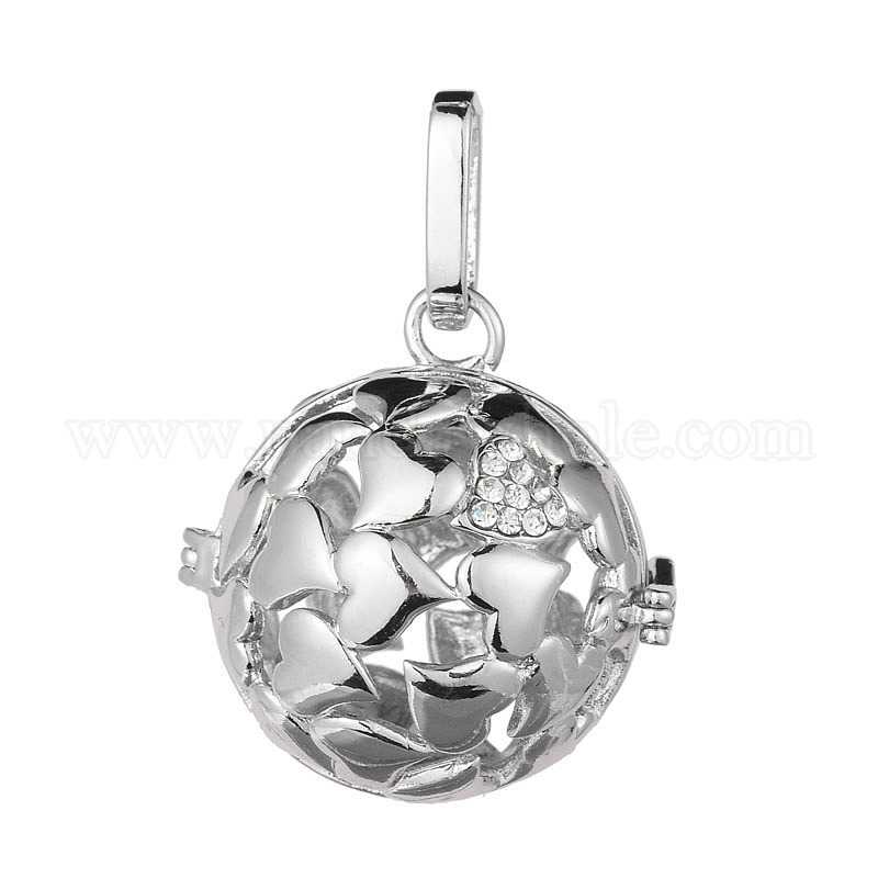 Латунный горный хрусталь полый круглый с сердечными подвесками, для ожерелья, без свинца, без никеля и без кадмия, 22 мм, отверстие : 3.5x8 мм