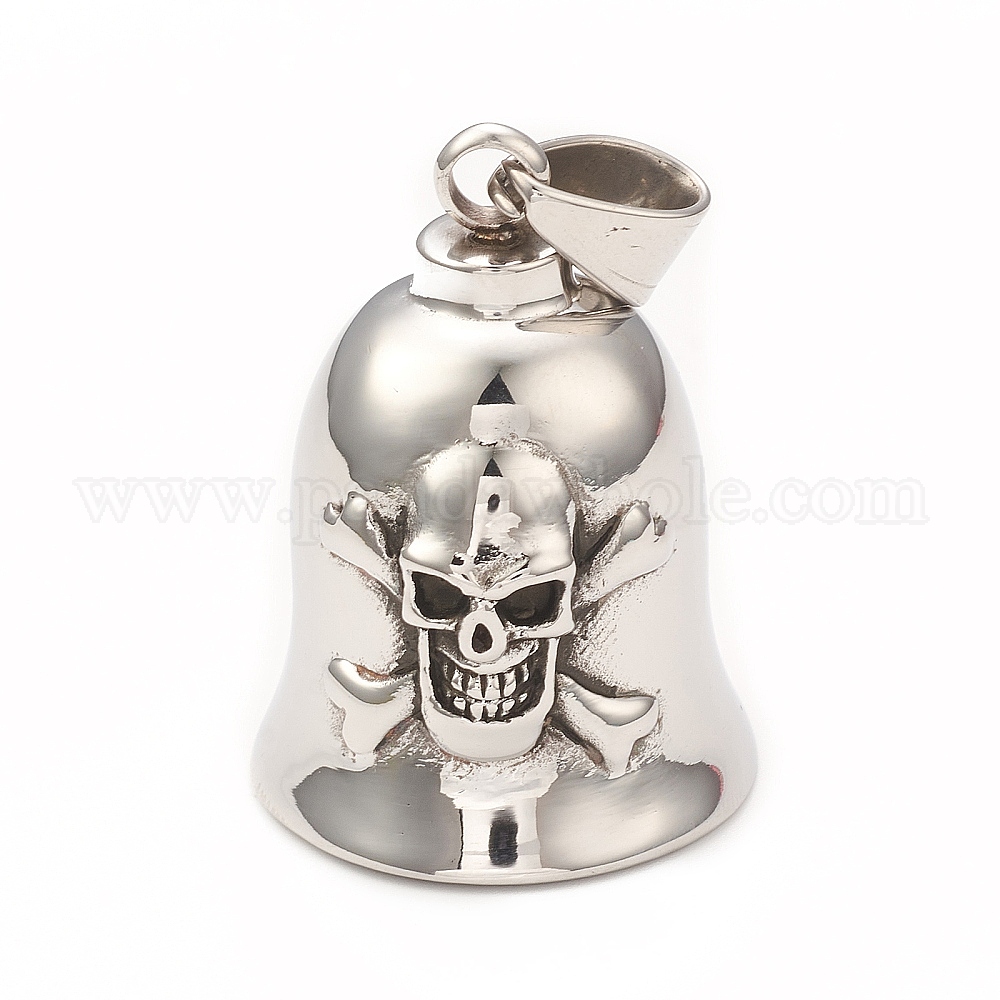 • Skull Винтажные подвески из нержавеющей стали гремлин-хранитель байкерские колокольчики, мотоциклетные байкерские колокольчики, старинное серебро и цвет нержавеющей стали, Рисунок черепа, 304 мм, отверстие : 36x26 мм