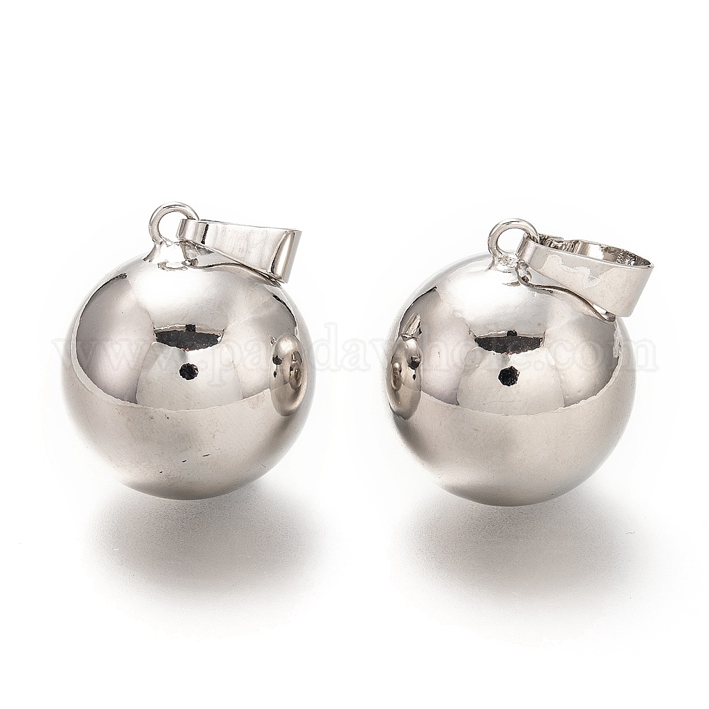 • Нержавеющая Сталь Цвет Латунные подвески-колокольчики, беременность бола, круглые, цвет нержавеющей стали, 24.5x20.5 мм, отверстие : 7.5x4.5 мм