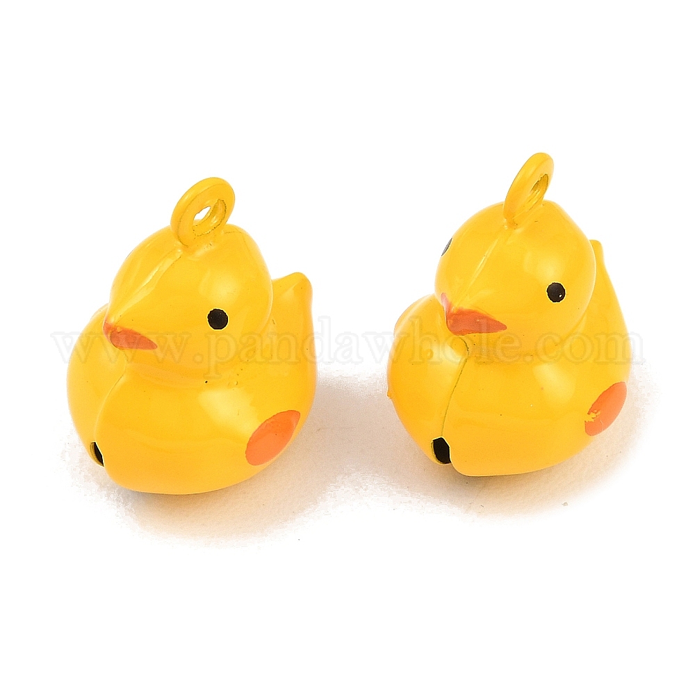 • Желтый Латунные подвески-колокольчики, с эмалью, утка, желтые, 21x16.5x15 мм, отверстие : 2 мм