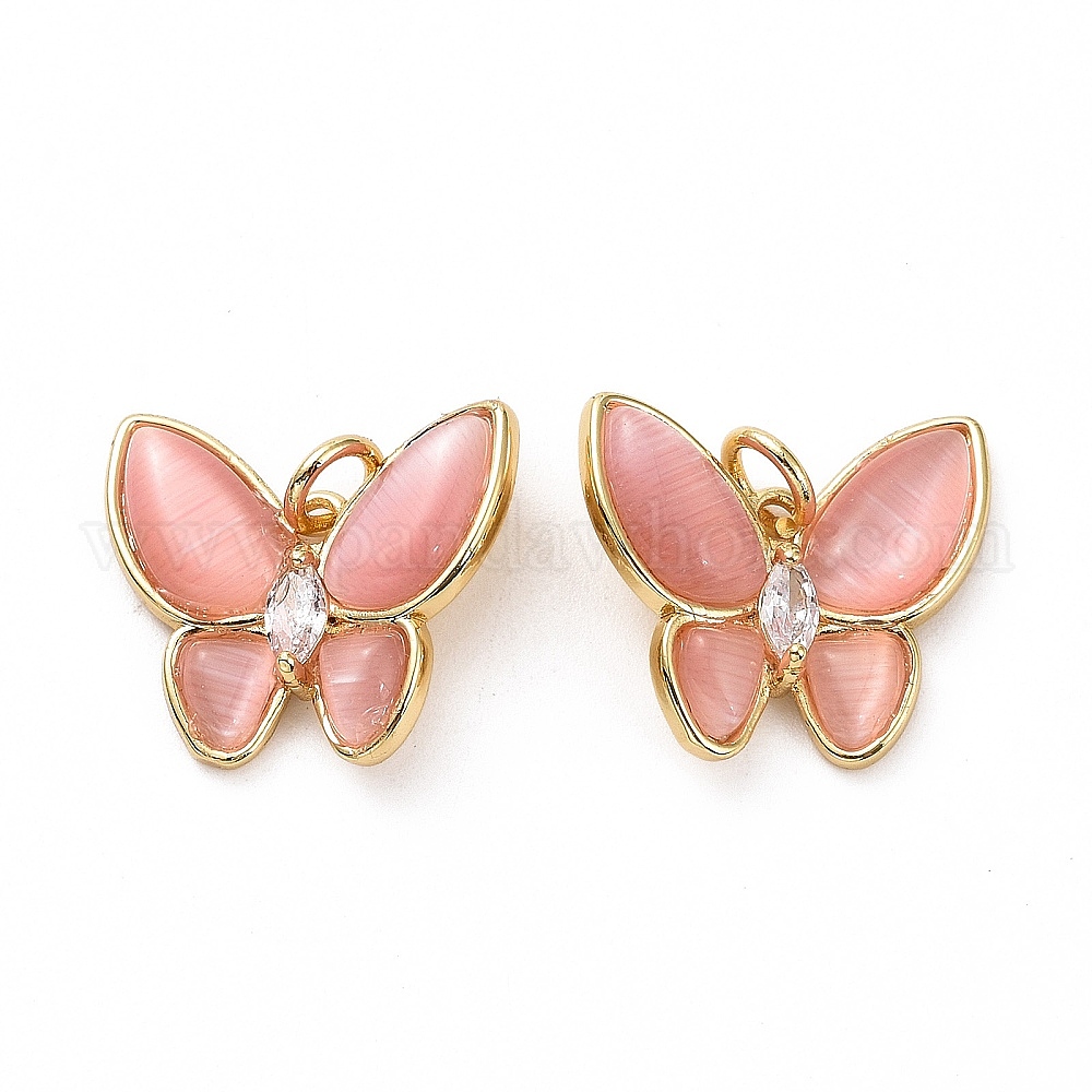Подвески из латуни с микропаве из прозрачного кубического циркония в виде бабочек, с кошачий глаз, с прыжковых колец, без кадмия и без свинца, реальный 18 k позолоченный