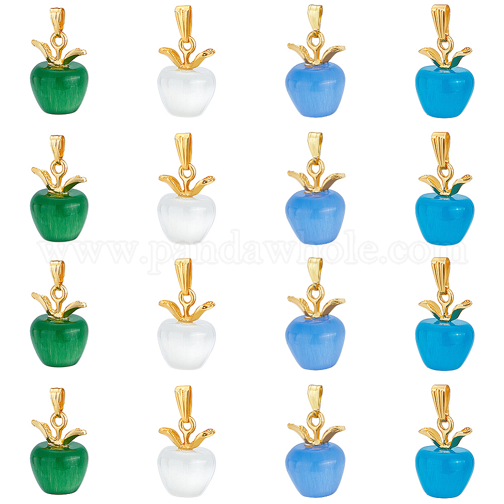 16шт. 4 цвета подвески «кошачий глаз», с позолоченной фурнитурой из сплава, яблоко