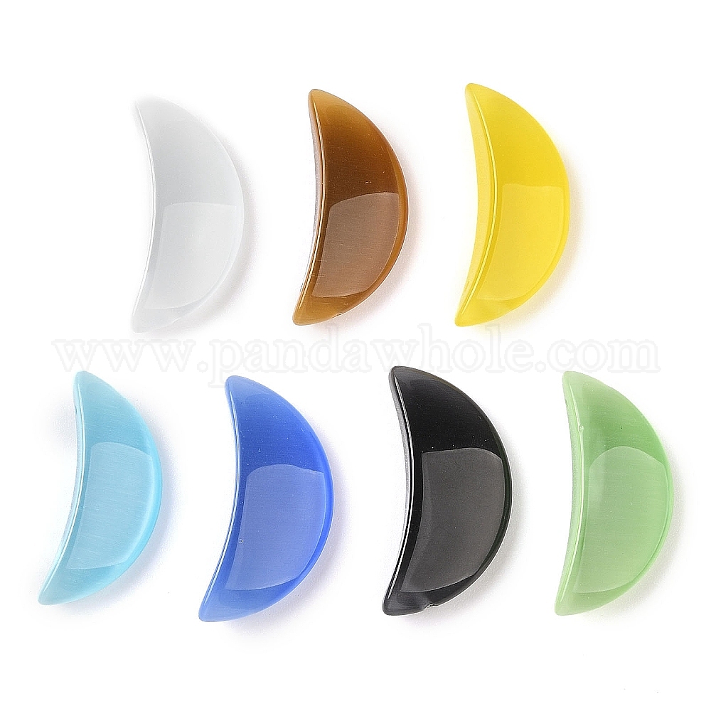 • Желтый Подвески кошачий глаз, луна, желтые, 34~35x15~16x7~8 мм, отверстие : 0.8 мм
