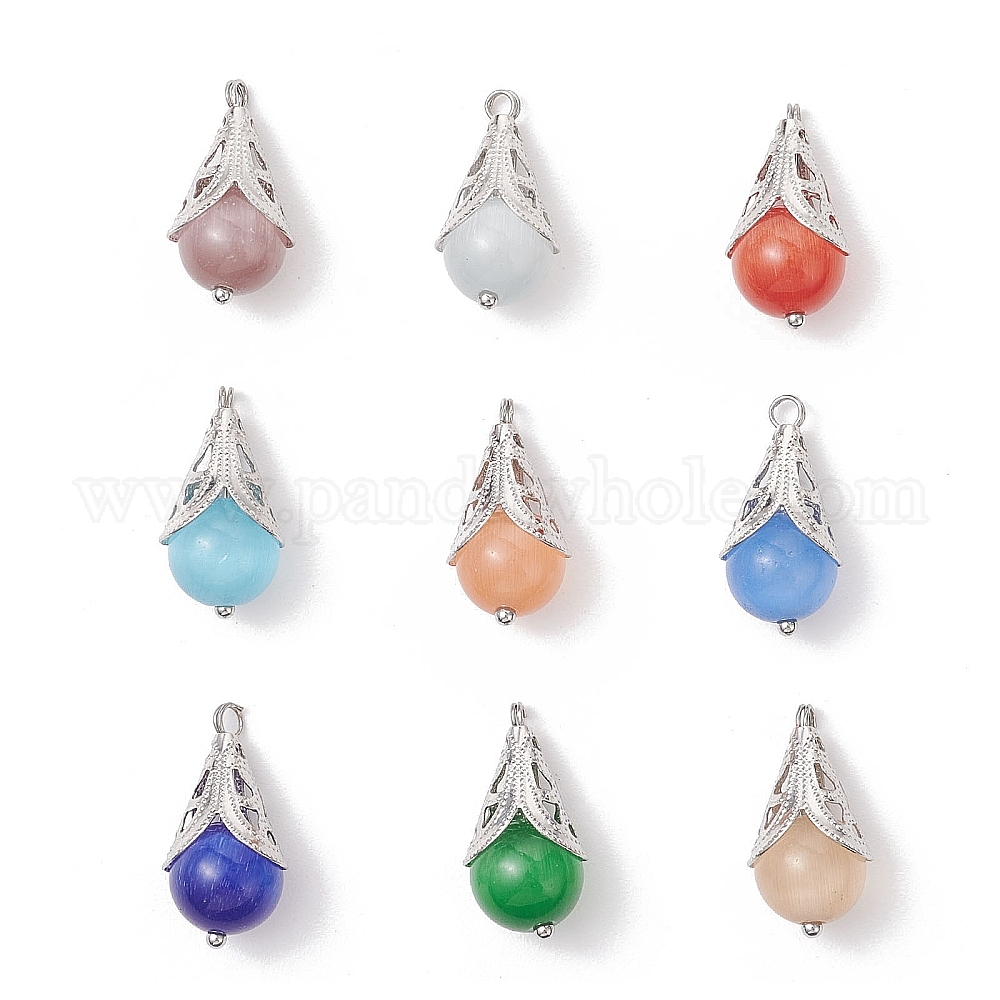 Кошачий глаз с латунными подвесками, круглые, платина