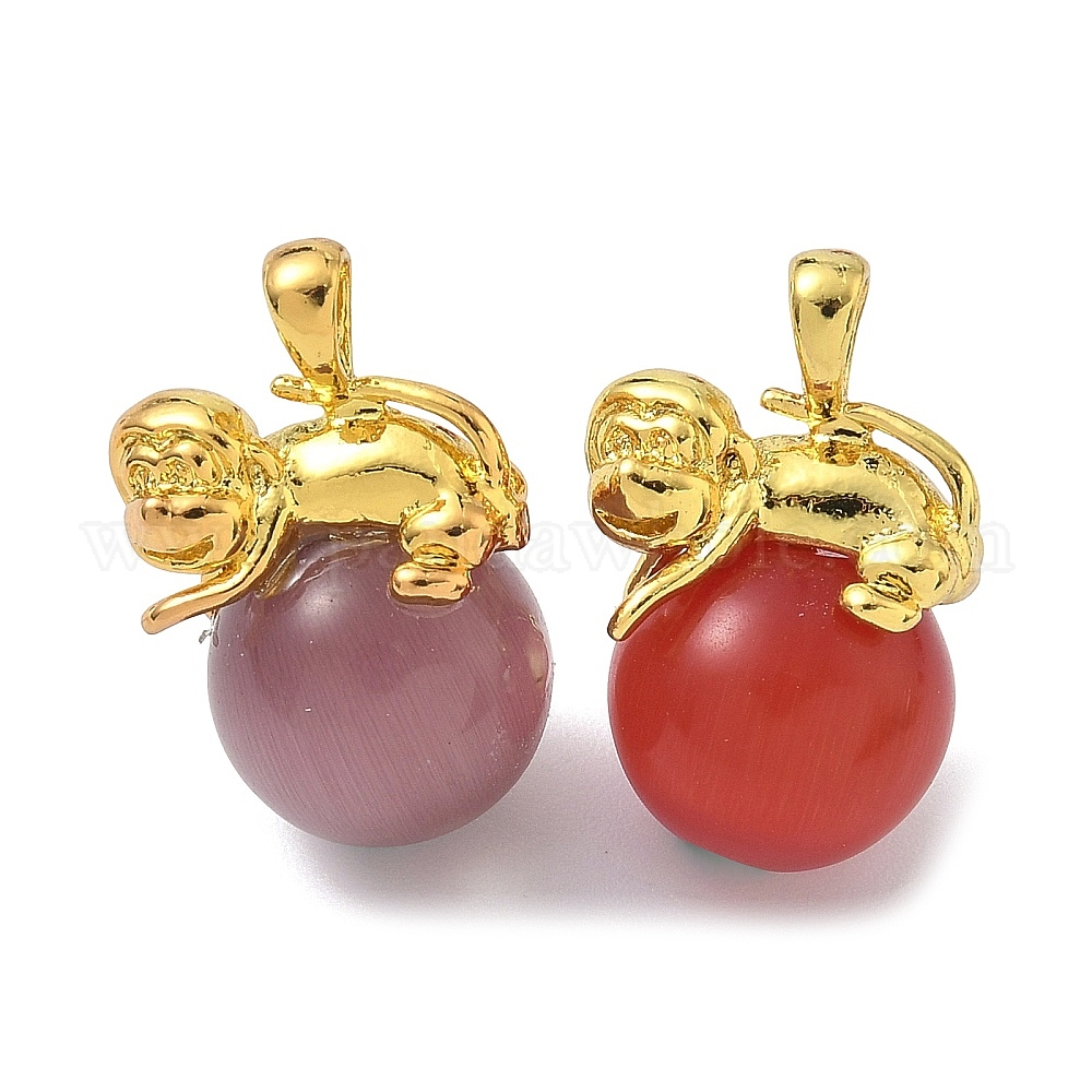 • (123L) Белый крем непрозрачный блеск Подвески из латунной кошки, обезьянка с круглым талисманом, без кадмия и без свинца, долговечный, стойки покрытие, реальный 18 k позолоченный, огнеупорный кирпич, 21x14x11.5 мм, отверстие : 3.5x2.5 мм