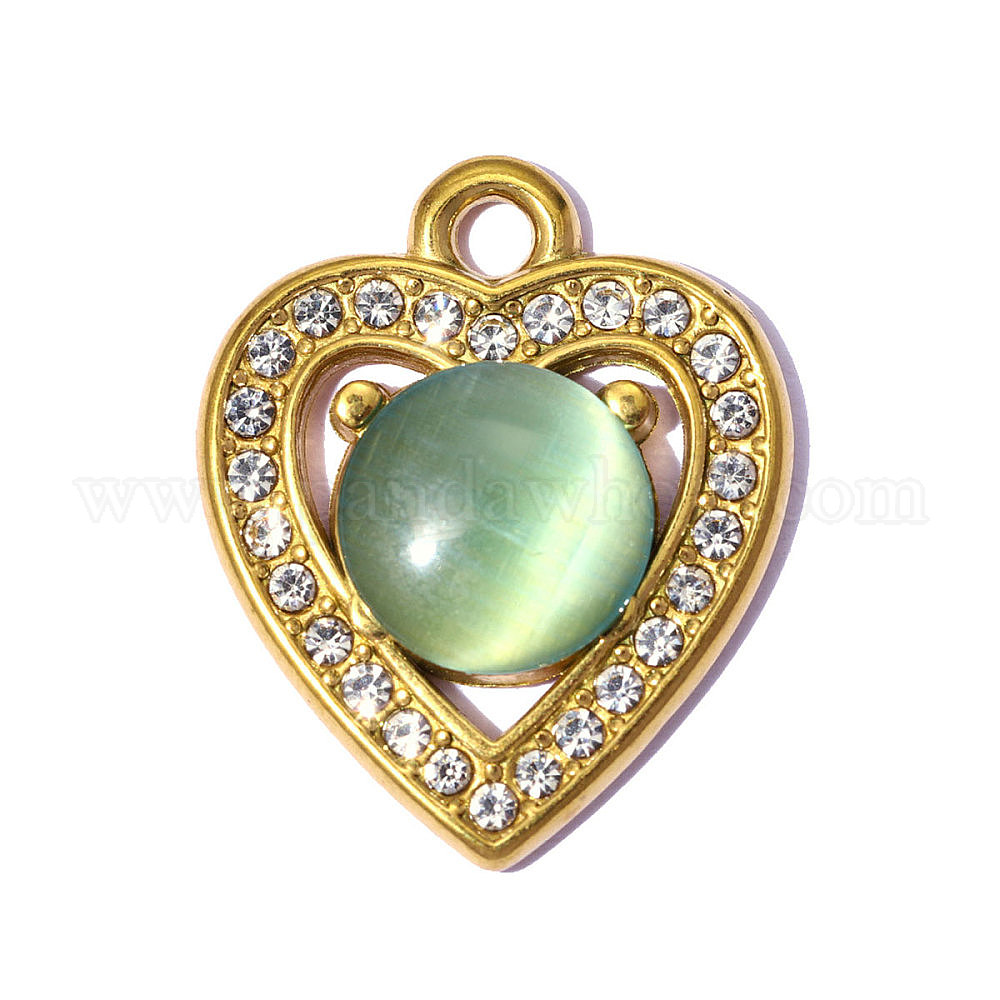 304 подвески из нержавеющей стали, с кошачий глаз, сердце прелести, зеркальная полировка, ионное покрытие (ip), реальный 18 k позолоченный