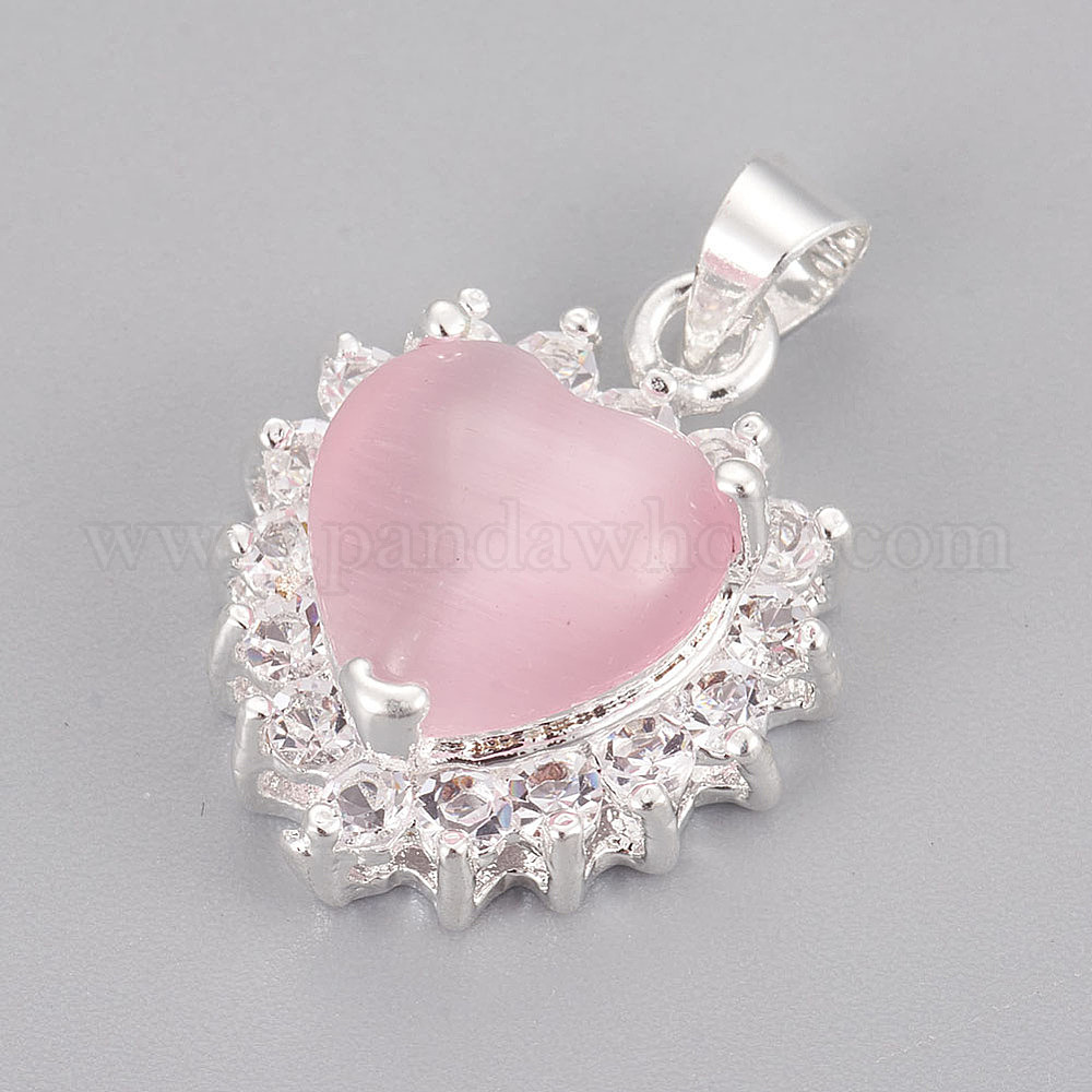 Подвески кошачий глаз, с хрустальной и латунной фурнитурой, сердце