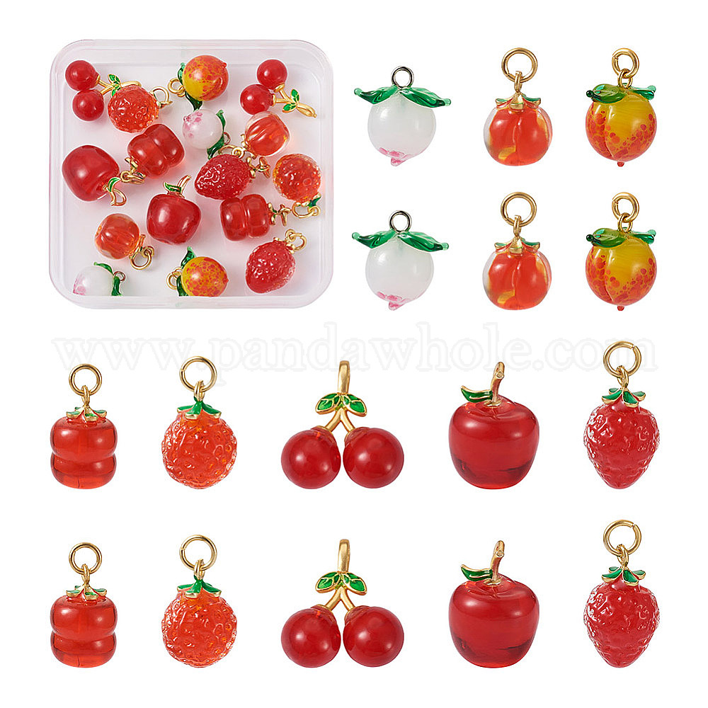 • Красный 16 шт 8 стиль подвески лэмпворк ручной работы, с латунной фурнитурой , без кадмия и без свинца, персик и вишня и колонка, красные, 14.5~20x12~18x8~14 мм, отверстие : 2.2~4 мм, 2 шт / стиль