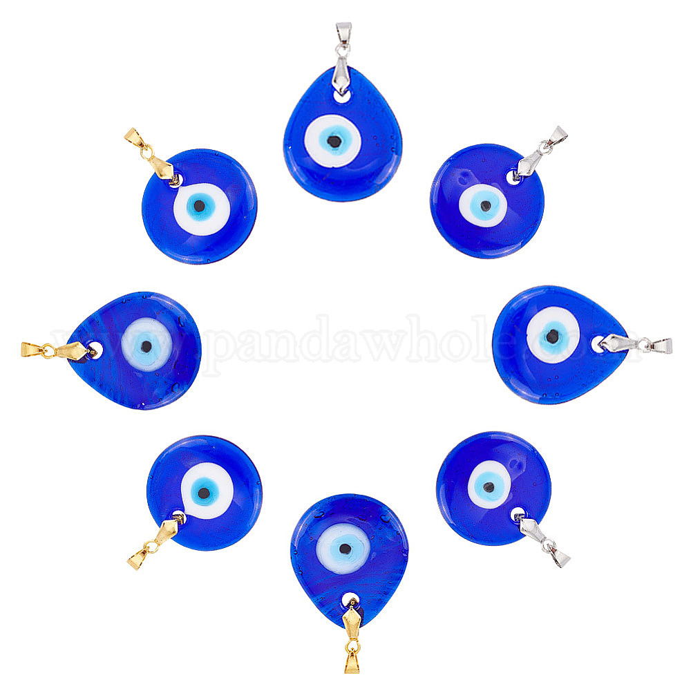 8 шт 4 стиль ручной работы лэмпворк сглаз кулоны, с латунным ледорубом класса аа нахождение поручней, слеза и плоская круглая