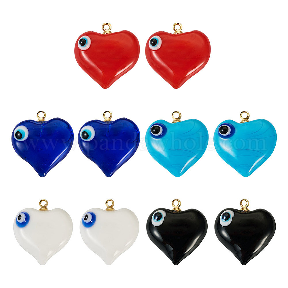 10шт 5цвета ручная работа сглаза лэмпворк подвески, с легкими золотыми тонами латуни, долговечный, шарма сердца