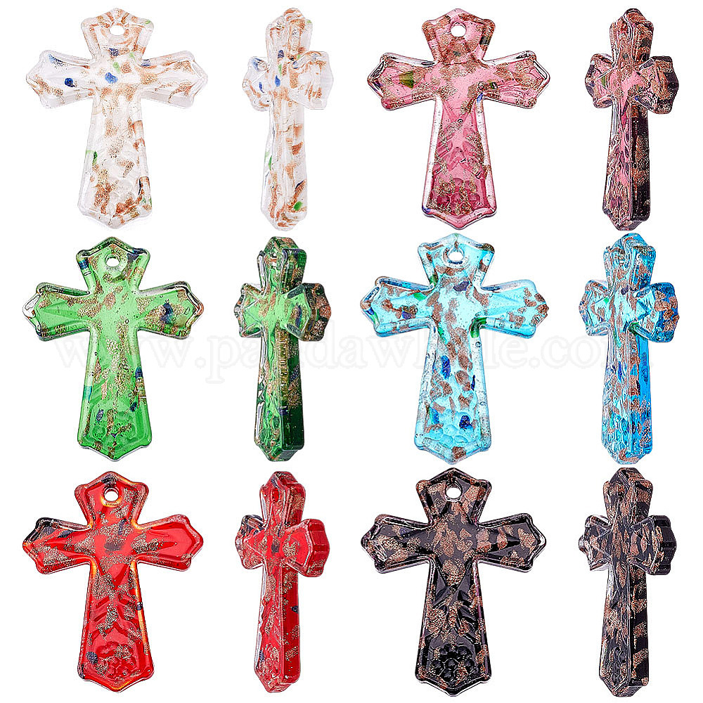 6 шт. 6 цвета золотой песок подвески ручной работы в технике лэмпворк, крестик