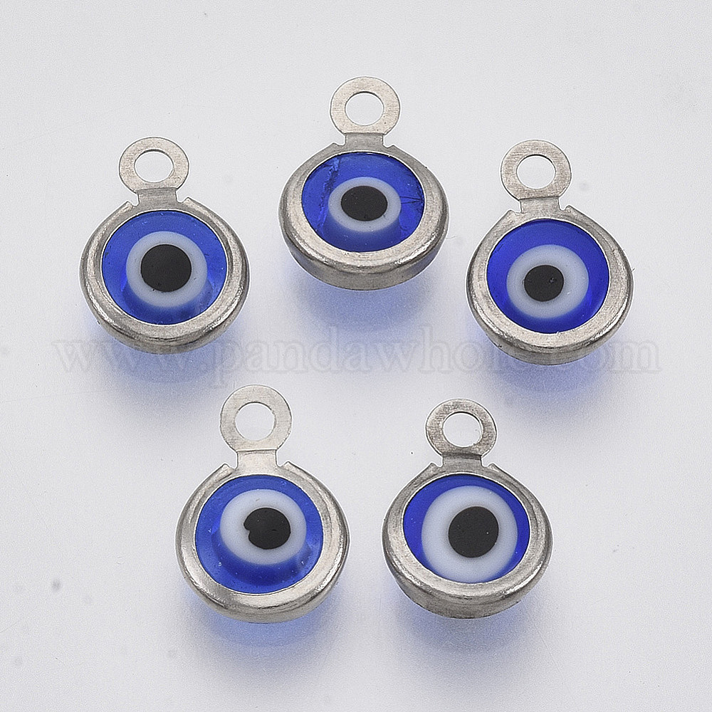 Прелести ручной работы бусины, с 304 фурнитурой из нержавеющей стали, плоские круглые с сглаза