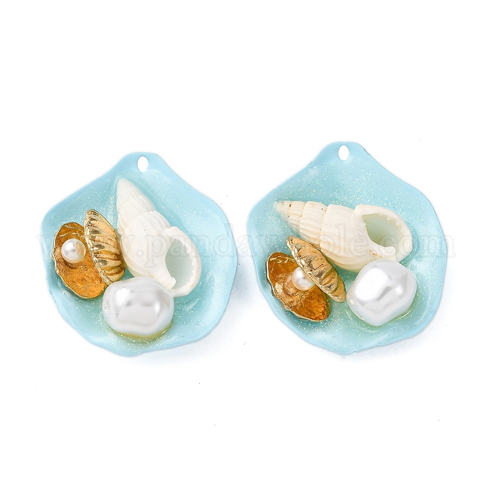 Распыленные окрашенные железные подвески, подвески в форме ракушек, с имитацией жемчуга из АБС-пластика, сплавом, керамикой и пудрой-глоттером, стойки покрытие