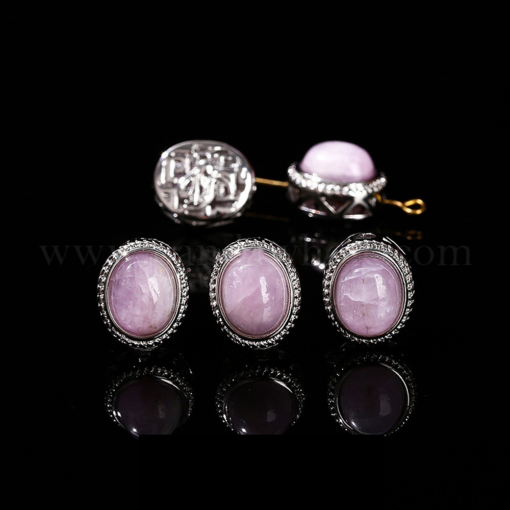 Бусины из натурального кунцита, сплав овальные бусины, платина