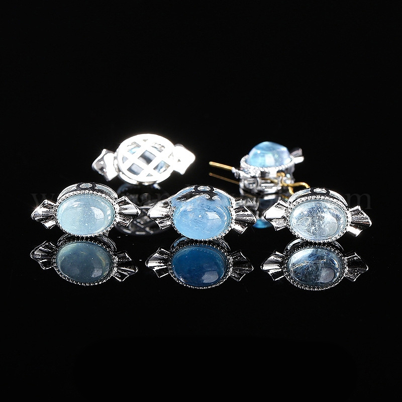 Натуральный аквамарин бисер, со сплавочной фурнитурой, овальные