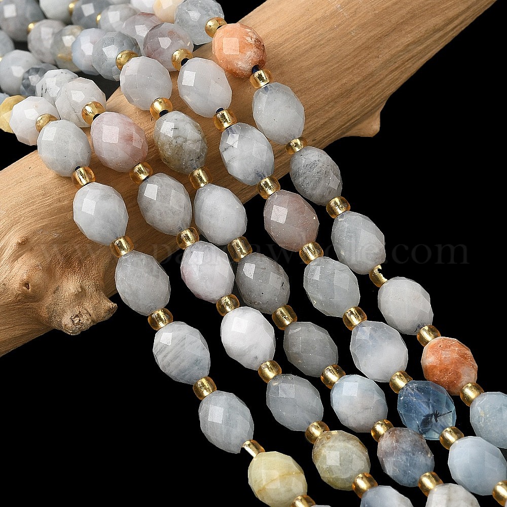 • Аквамарин Природные Аквамарин бисер нитей, граненые, рис, с бисером, 7.5~8x6~7.5 мм, отверстие : 0.8~1 мм, около 36~40 шт / нитка, 15.55~15.75'' (39.5~40 см)