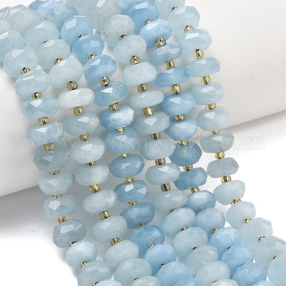 Природные Аквамарин бисер нитей, рондель, граненые, с бисером