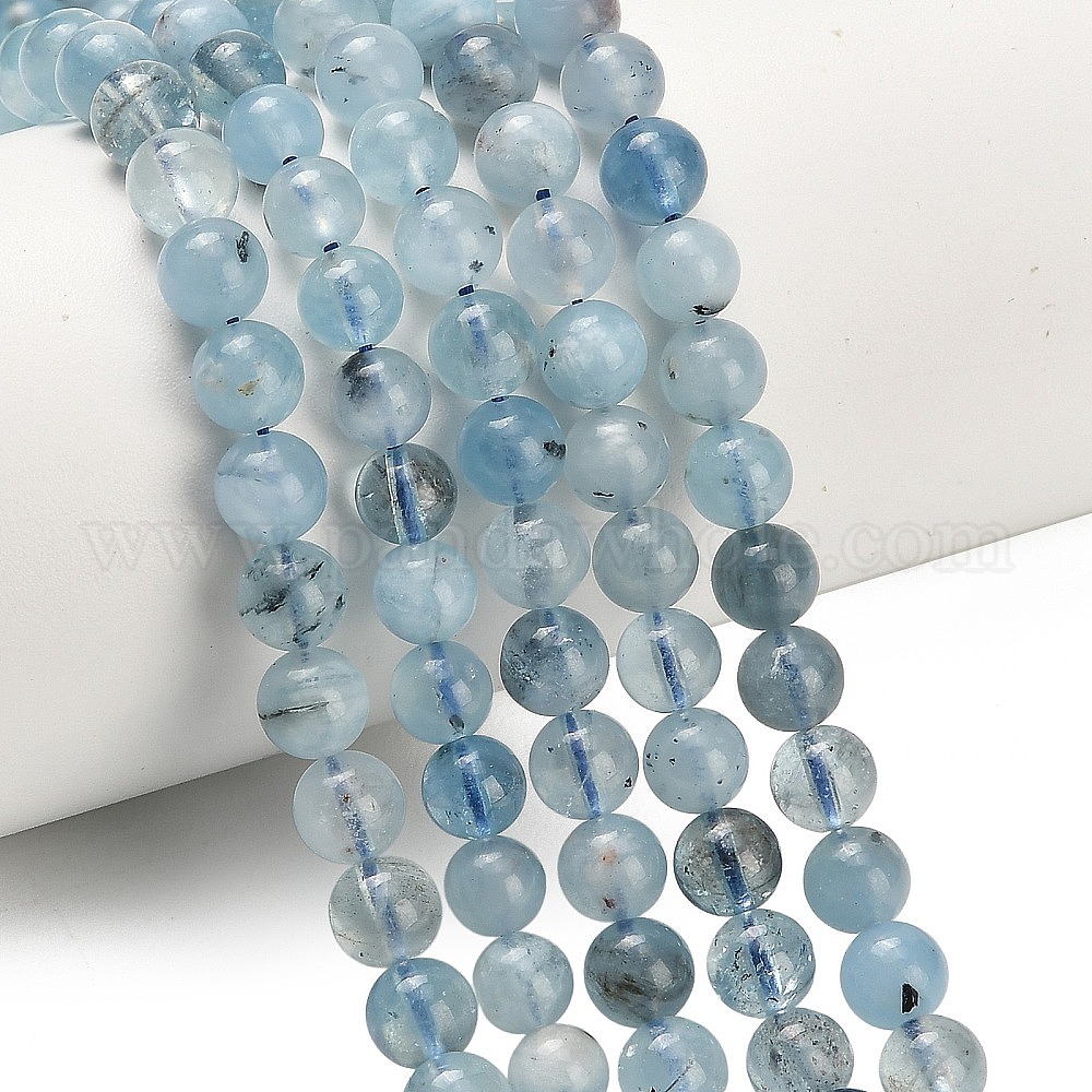 Природные Аквамарин бисер нитей, круглые, сгладить