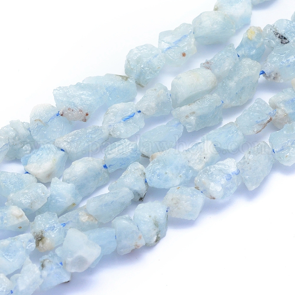 • Аквамарин Необработанные грубые нити натурального аквамарина, самородки, 6~12x6~10x5~8 мм, отверстие : 0.7 мм, около 48 шт / нитка, 15.75 дюйм (40 см)