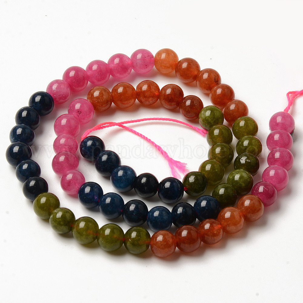 Круглые окрашенные нити из натурального кварца, сегментированные разноцветные бусины