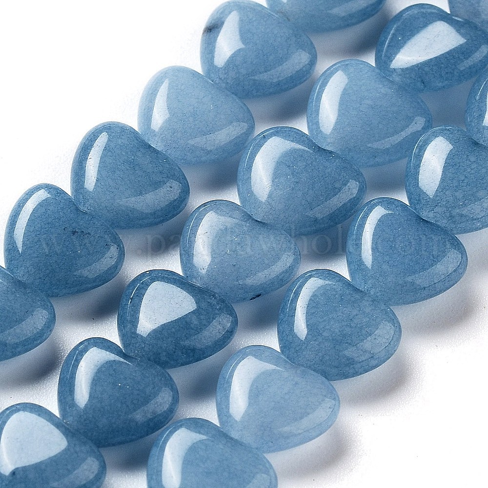 Нити натуральных кварцевых бусин с имитацией аквамарина, окрашенные, сердце