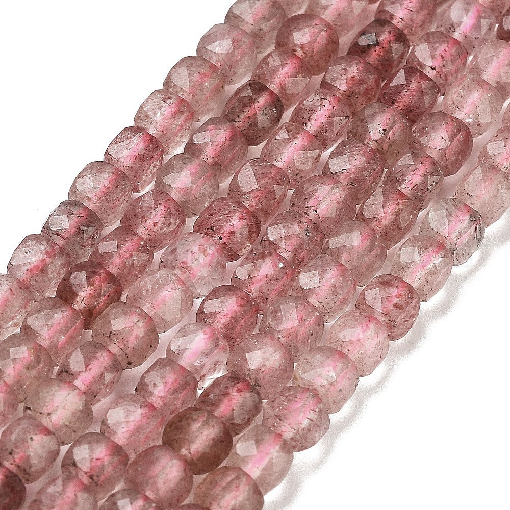 Природного кварца клубники нитей бисера, граненые, кубические (02WYE5)