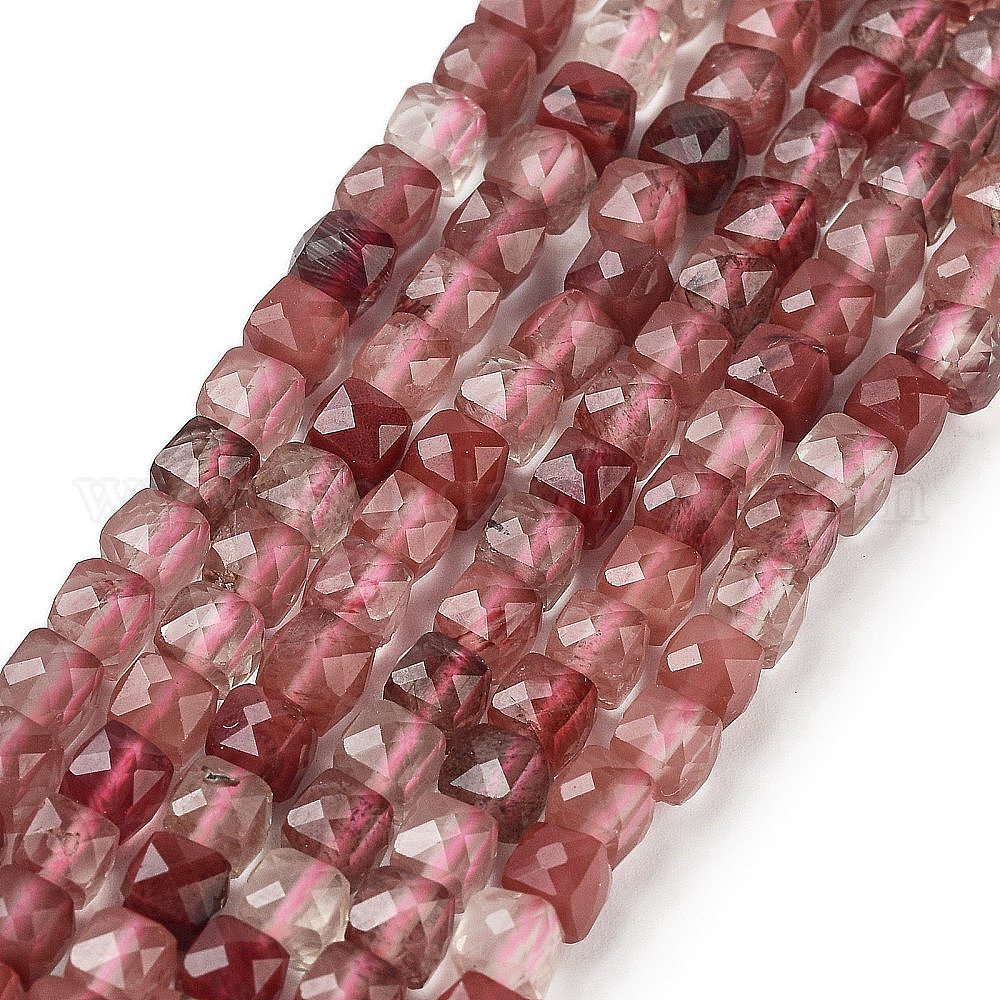 Натуральный красный кварцевые нити бисера, граненые, кубические
