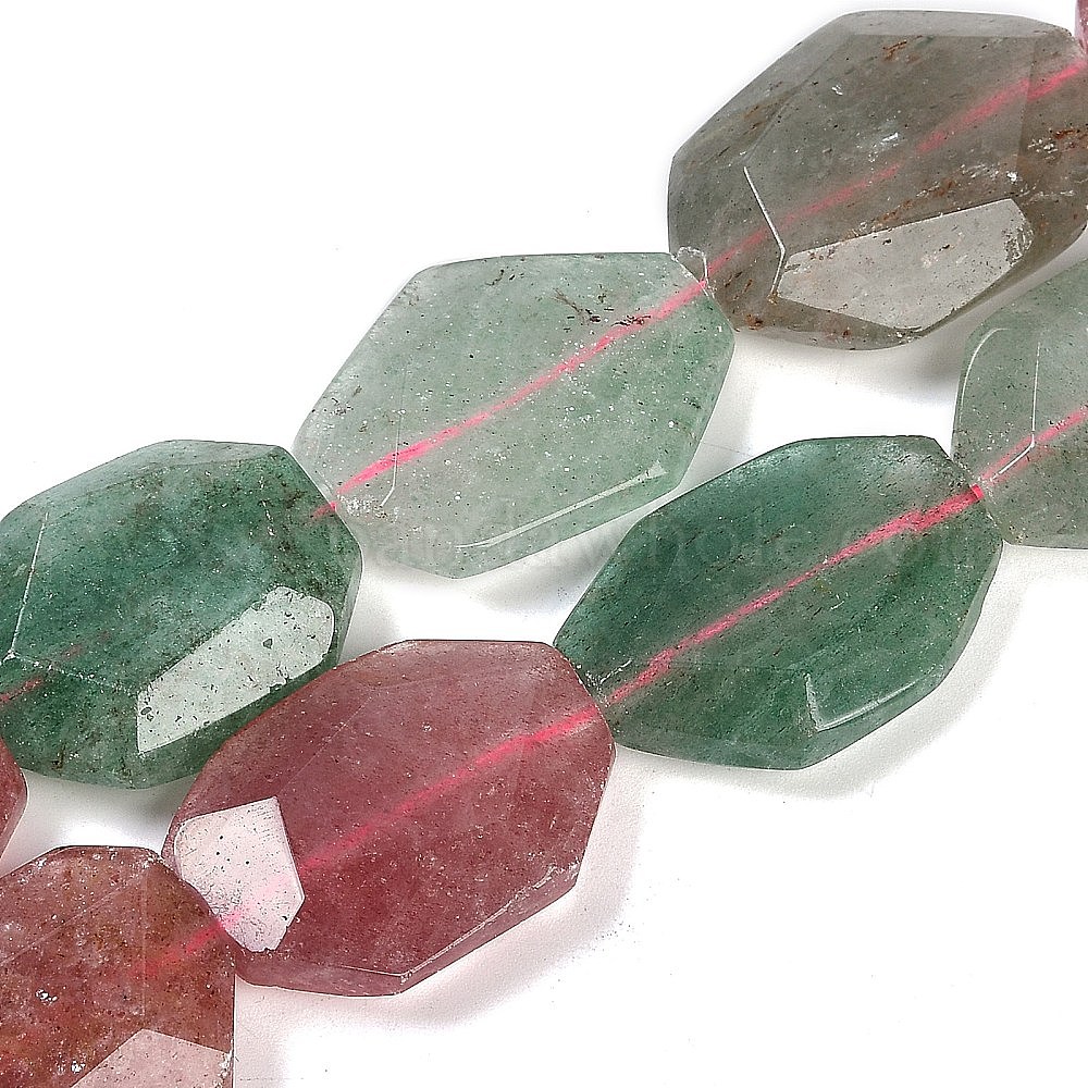 Нити бусин из натурального красного и зеленого клубничного кварца, граненые, прямоугольные, с бисером
